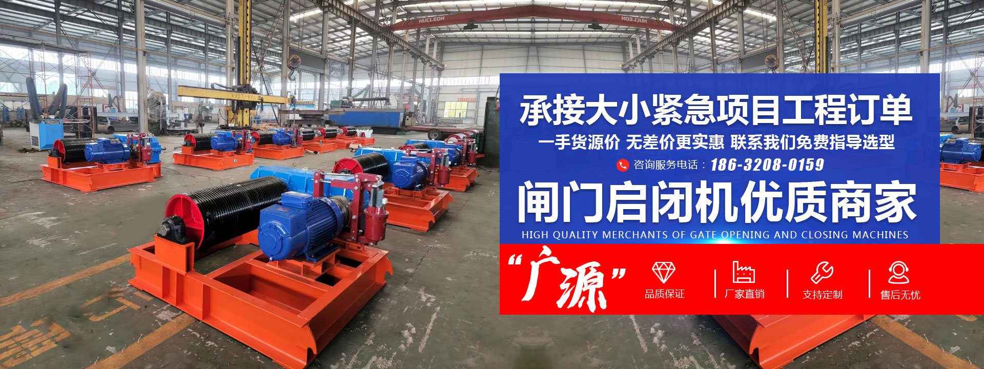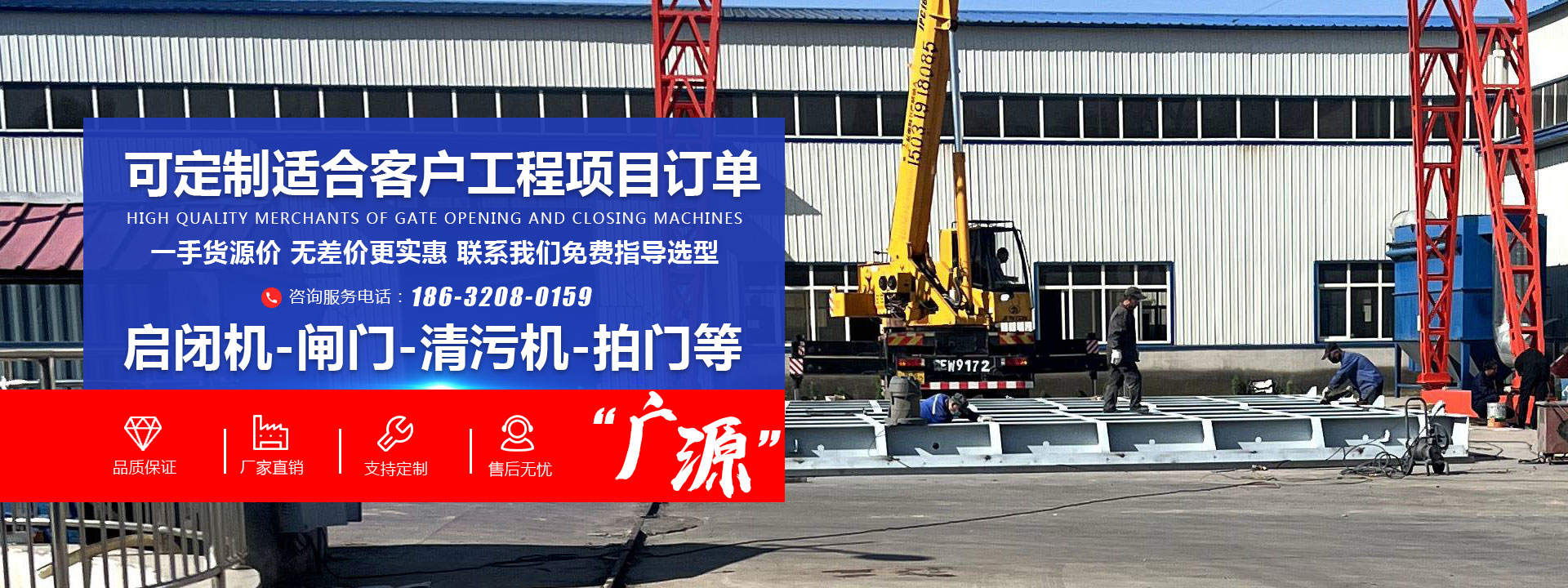 新河縣廣源水利機械有限公司是從事水工機械啟閉機、閘門、螺桿式啟閉機、固定卷揚式啟閉機、移動卷揚式啟閉機、鑄鐵閘門、鋼制閘門、不銹鋼閘門、拍門、回轉清污機、格柵清污機及粉碎清污機,攔污柵、橡膠止水的專業(yè)制造、生產及指導安裝的綜合性廠家,是制造、銷售、安裝一體化的規(guī)模型水利工程機械生產企業(yè)。 我廠主導產品: 1、螺桿式啟閉機0.3-100T;手推帶鎖式螺桿啟閉機;手輪啟閉機;QLP平推螺桿式啟閉機0.5-2T;QLF三防型全封閉磁力鎖螺桿式啟閉機0.3T-30T;QLC側搖螺桿式啟閉機0···